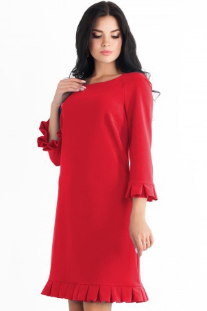 Нежное романтичное платье ровного кроя. Рукав "реглан". Вырез "лодочка". Низ платья и рукава украшены эффектными рюшами.