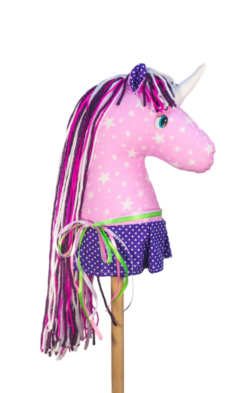 Палка сделана из экологичного и прочного материала -- дерева -- и тщательно отшлифована для избавления от заноз и сколов. Мордашка выполнена из натуральной бязевой ткани, а грива -- из шерстяных ниток. Игрушка имеет оригинальный дизайн, который оценит любая девочка.